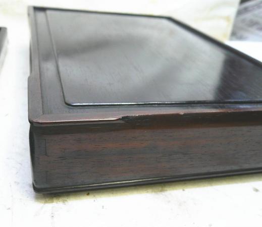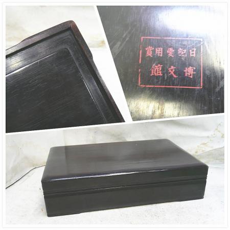 写真の物です、古い紫檀製硯箱/文箱です。 年代物、汚れ軽い擦れがあります。 蓋の縁は年数でやや変形曲がれ、蓋の合われ処ずれ外れがあります。 (写真の矢印ご参照ください) 蓋の裏には「博文館 日記愛用賞」の逆さ文字があります。 全体サイズ 長さ26cm幅17.5cm厚み6cm重さ809g 内寸 長さ24cm幅15.5cm深さ4cm 写真の物は全てです。 その他は写真をご参照下さい。 説明と違い以外、ノークレームノーリターンでお願いします。 |